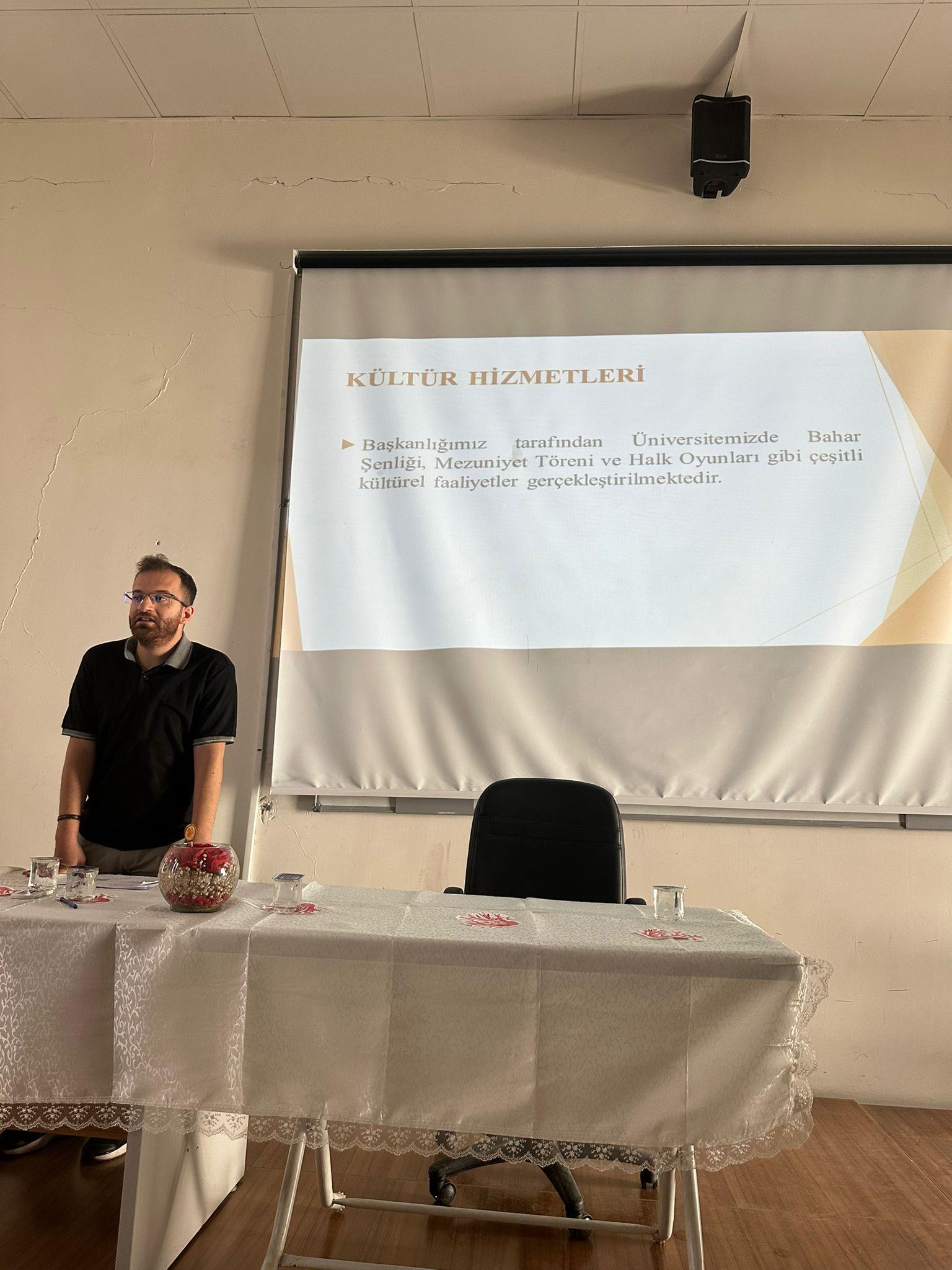 Yüksekokulumuz "Gastronomi ve Mutfak Sanatları Bölümü" ile "Rekreasyon Yönetimi bölümü" birinci sınıf öğrencilerinin, üniversitemize ve yüksekokulumuza oryantasyonunun sağlanabilmesi amacıyla 16.10.2025 tarihinde AMFİ-1 de oryantasyon programı düzenlenmiştir.